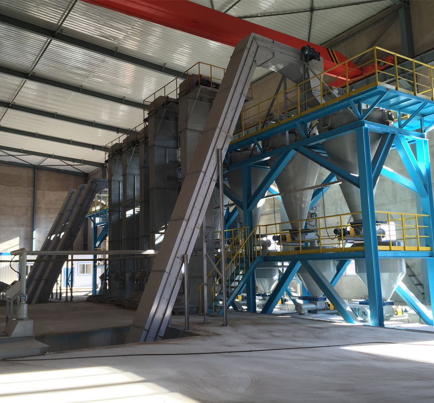 该系统主要由自动上料系统、自动计量系统、自动输送系统、自动混料系统、自动包装系统五大部分组成。